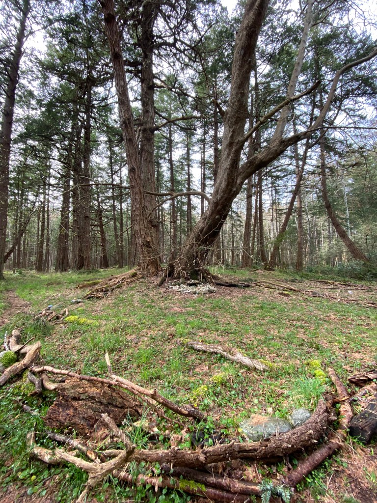 - exploring new paths in the forest and seeing where they led. We ended up finding a magical tree, decorated with small animal skulls and bones and rocks. It felt like a very sacred place and we were compelled to whisper and to leave something of our own hanging on the tree